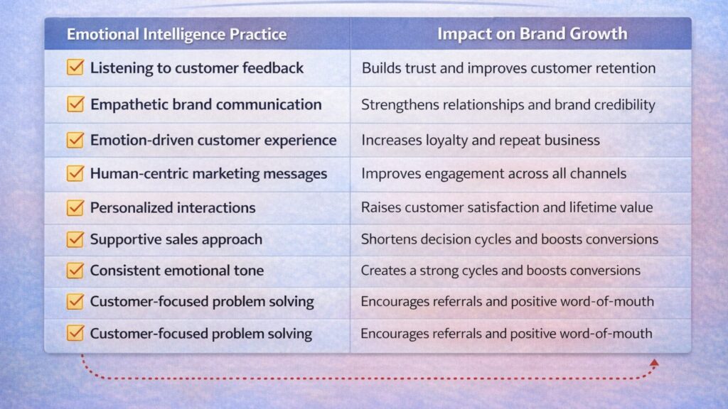 Brands that use emotional intelligence in branding build better relationships and improve long-term success. Here are smart and practical ways to use EI in marketing and emotional branding:
